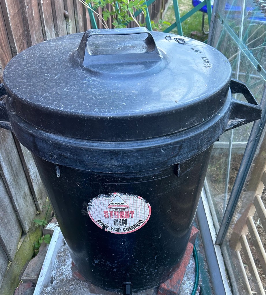 Before diving into any DIY project, it’s important to plan and conduct thorough research. In my case, one of the challenges I faced was the distance between the external tap and my greenhouse. To overcome this, I needed a water reservoir. Luckily, the previous owners had left behind an ashes bin, which turned out to be the perfect solution. It was tough, thick, black and came with a lid to cover it up well.